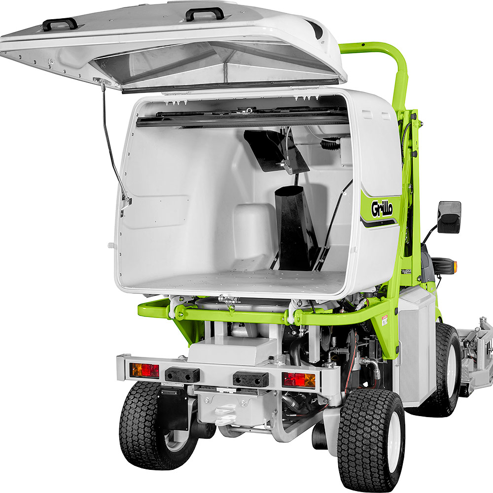 Dispone di 4 ruote motrici permanenti, piatto di taglio frontale, contenitore per la raccolta dell’erba molto capiente e scarico rialzato. Il motore è di ultima generazione, potente e affidabile, è a basse emissioni inquinanti e risponde alle norme internazionali STAGE 5.