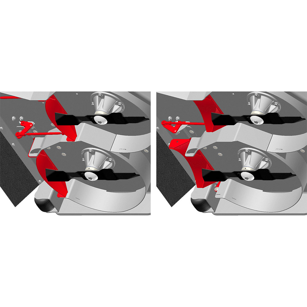 Apparato di taglio | Piatto frontale a 3 lame, flottante con sistema mulching / scarico posteriore azionabile tramite leva dal posto guida. Ribaltamento elettrico del piatto per la manutenzione |