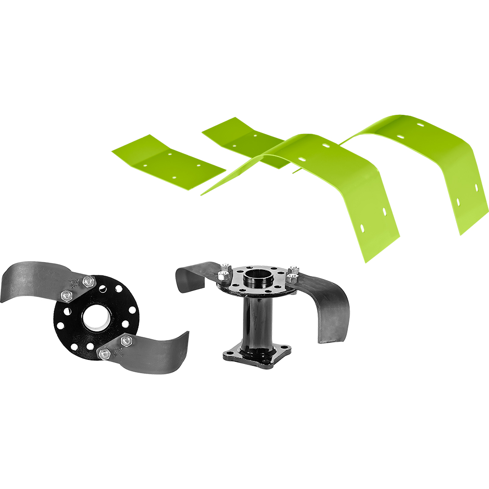Le zappe, montate con i bulloni, sono in acciaio temprato e hanno un diametro di lavoro di 32 cm.