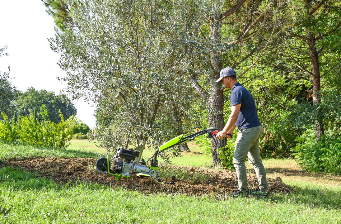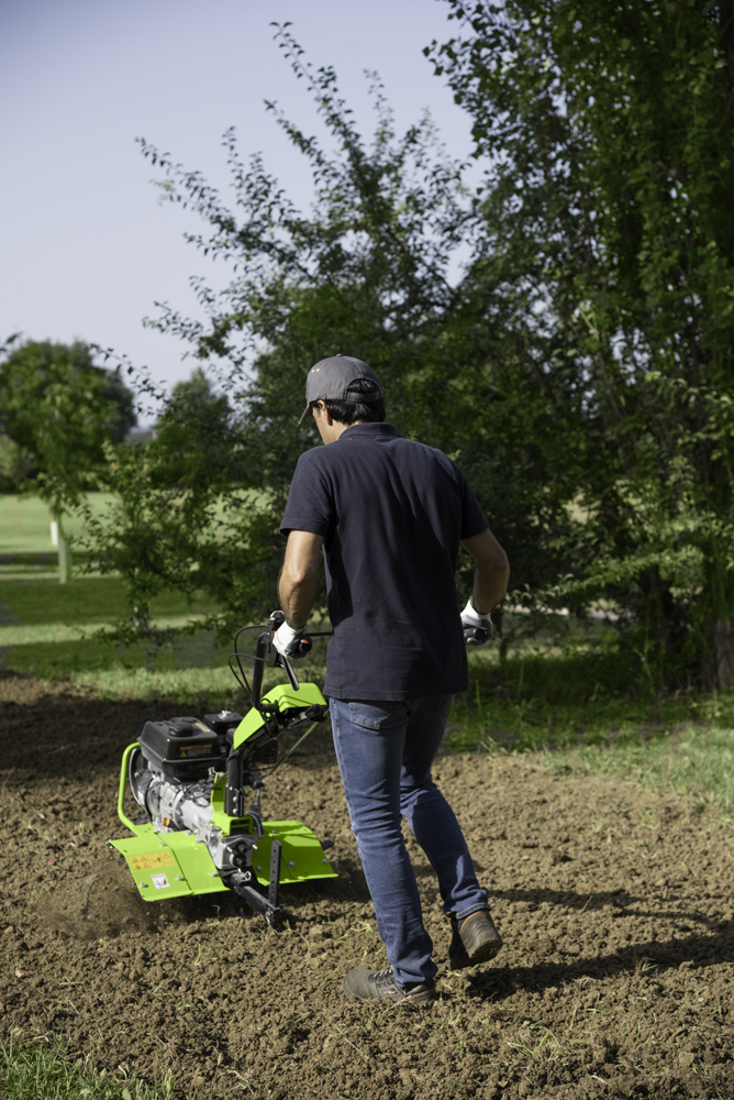La frizione a comando attivo, gestita tramite una leva ergonomica, è esente da manutenzione e di facile regolazione. Quando la leva viene rilasciata le zappe si fermano immediatamente e il motore rimane in moto. Massima praticità e sicurezza.